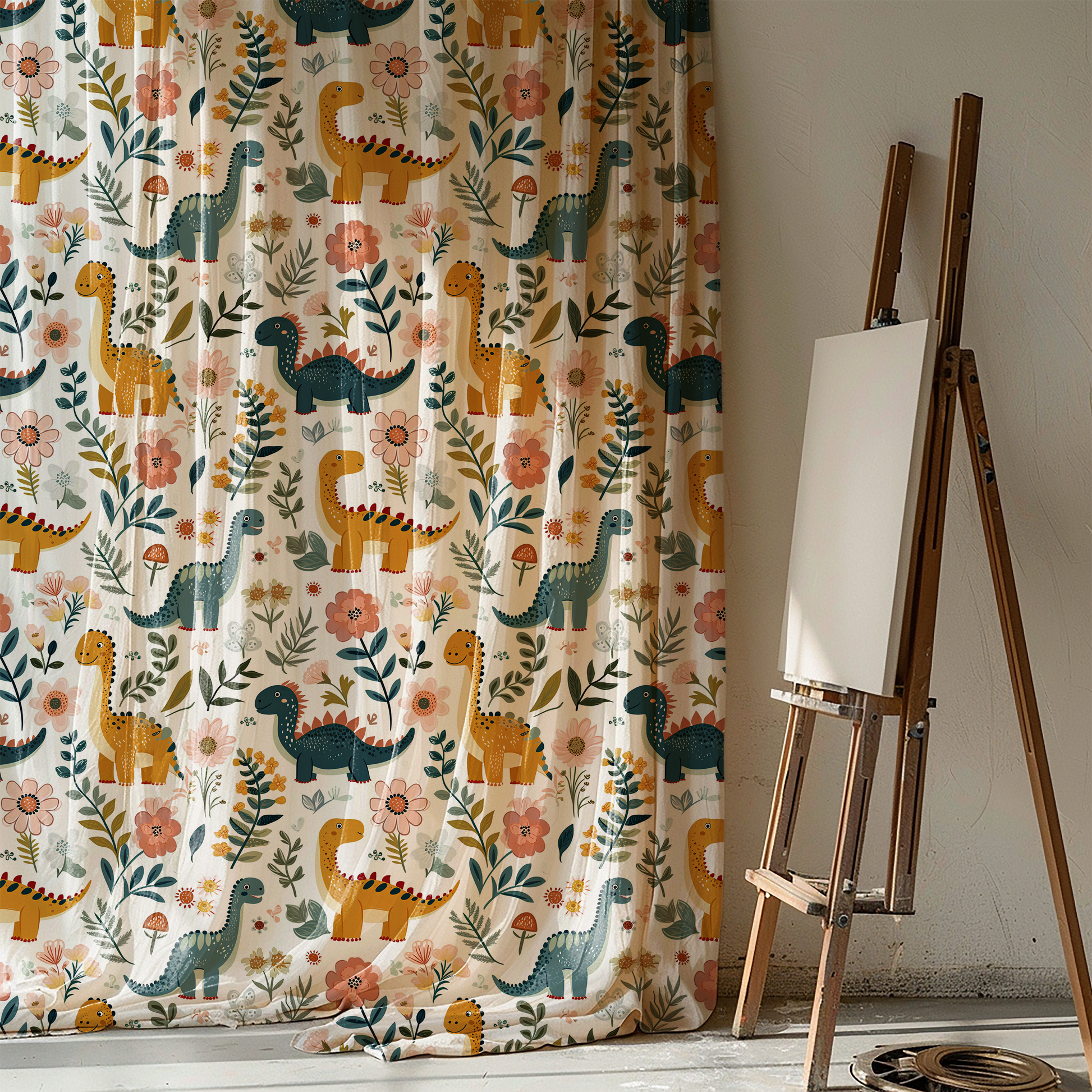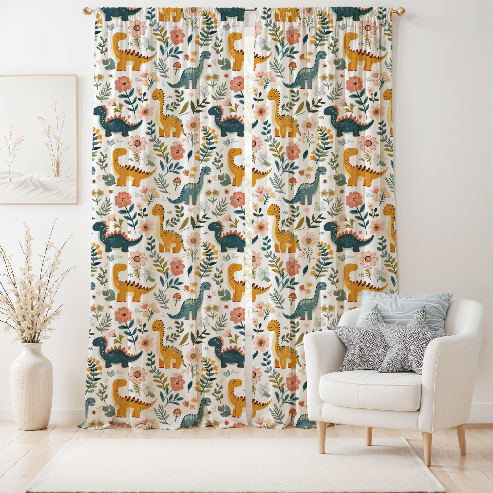 🦕 Dino Dreams Window Curtain for Kids’ Rooms 🌿