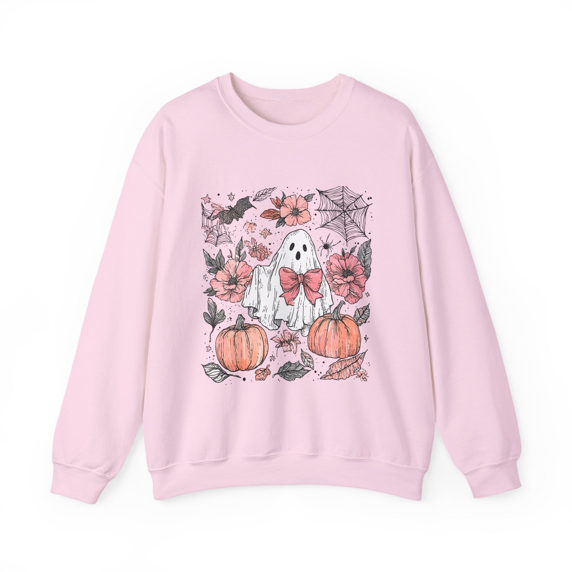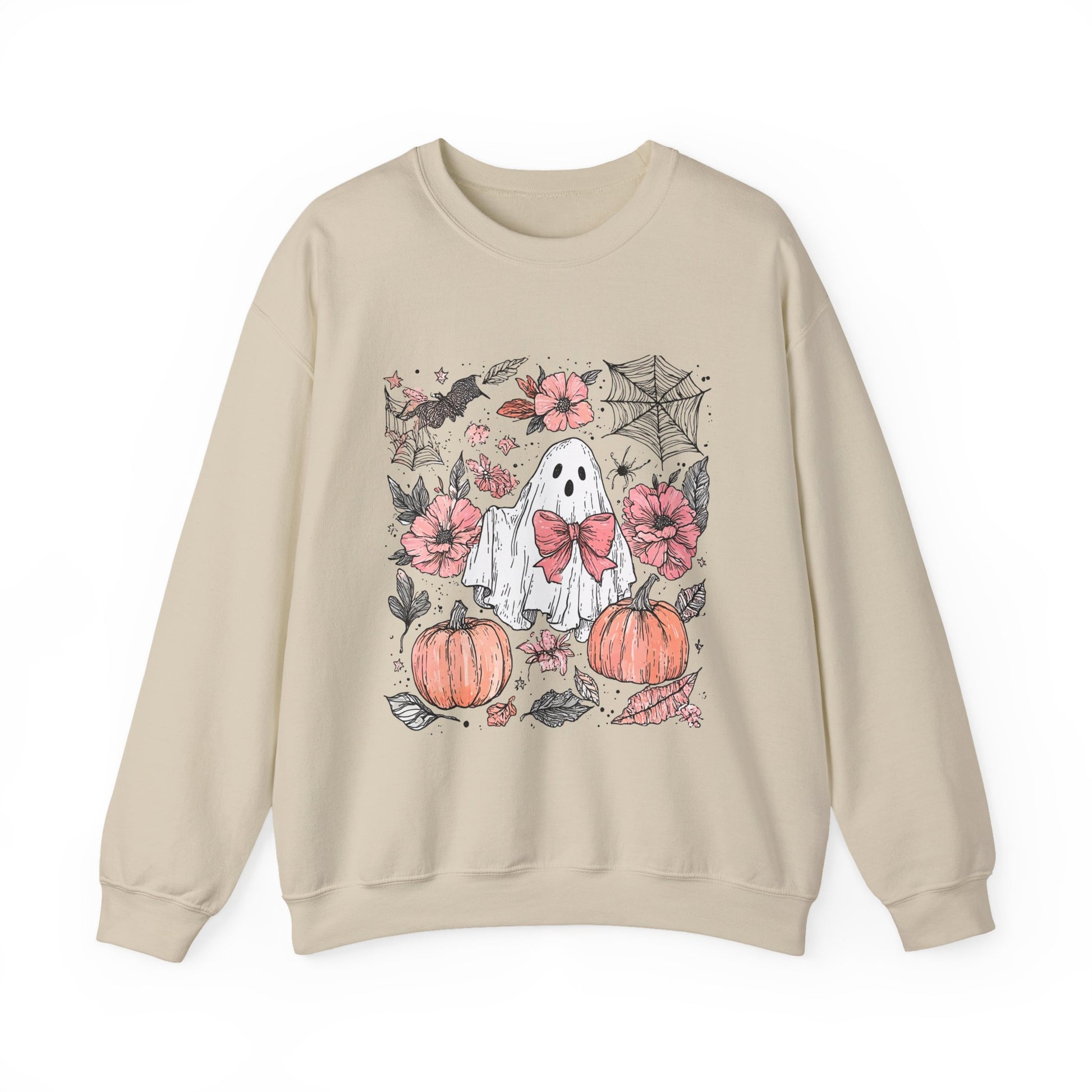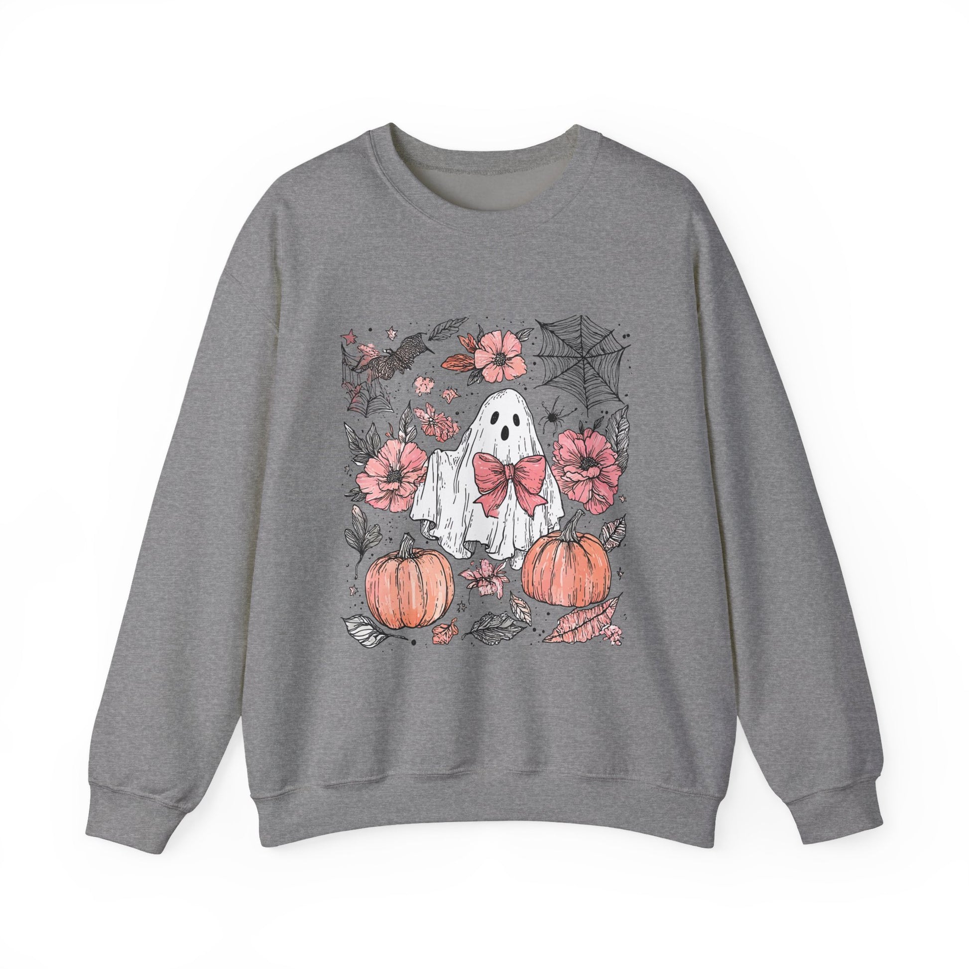 Halloween Ghost Sweatshirt - Cozy Unisex Crewneck with Pumpkins, Perfect for Fall, Ghost Lovers, Autumn Apparel, Spooky Season