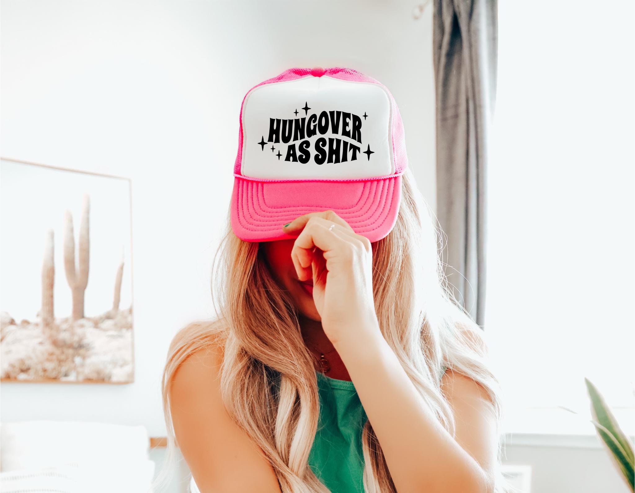 Hungover As Shit,Snarky Hat,Offensive Trucker Hat,Adult Humor Hat,Bachelorette Trucker Hat,Bachelor Trucker Hat,Groom Gifts,Bachelor Hat