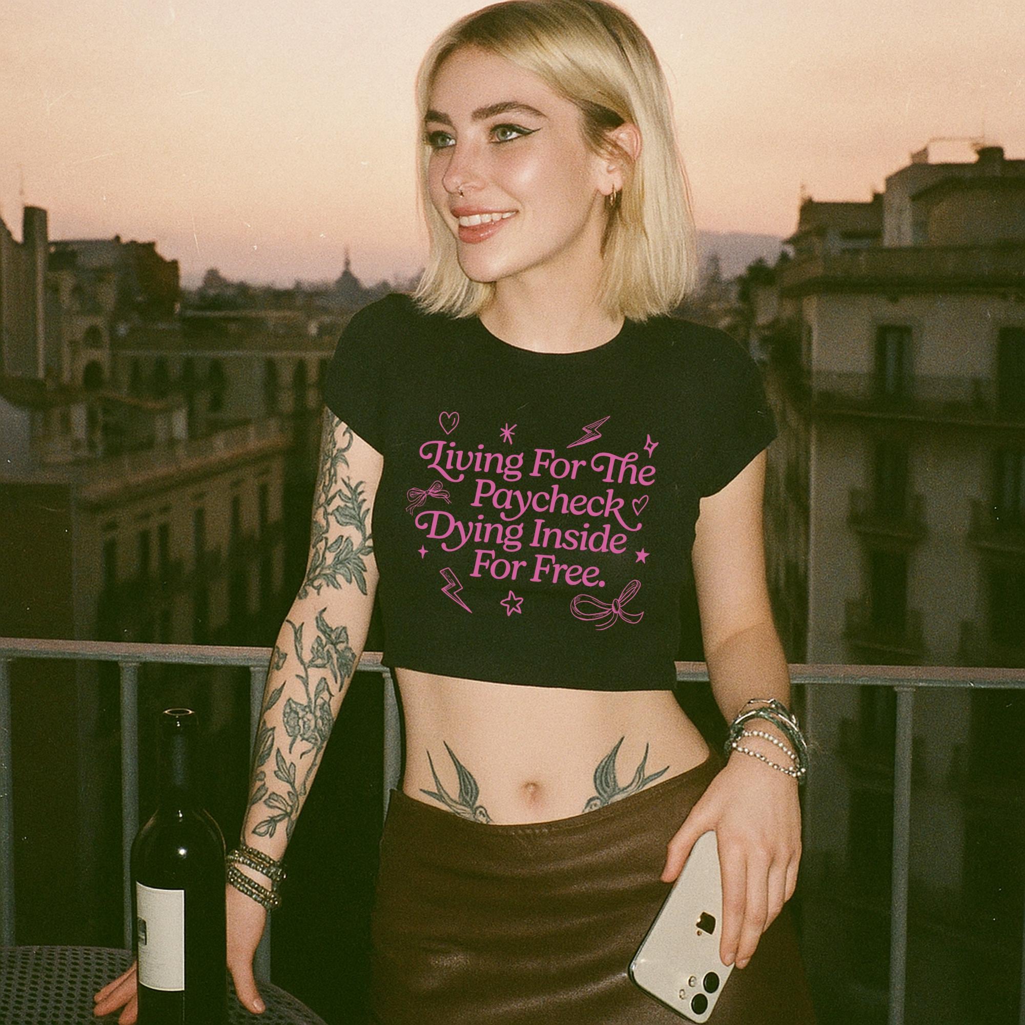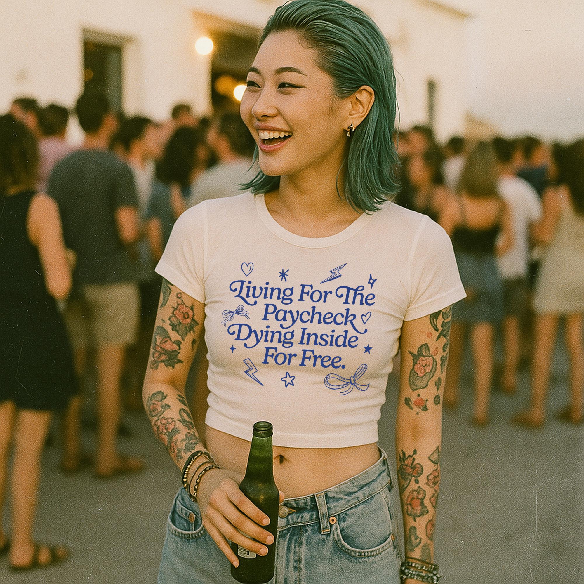 Living for the paycheck cropped baby tee