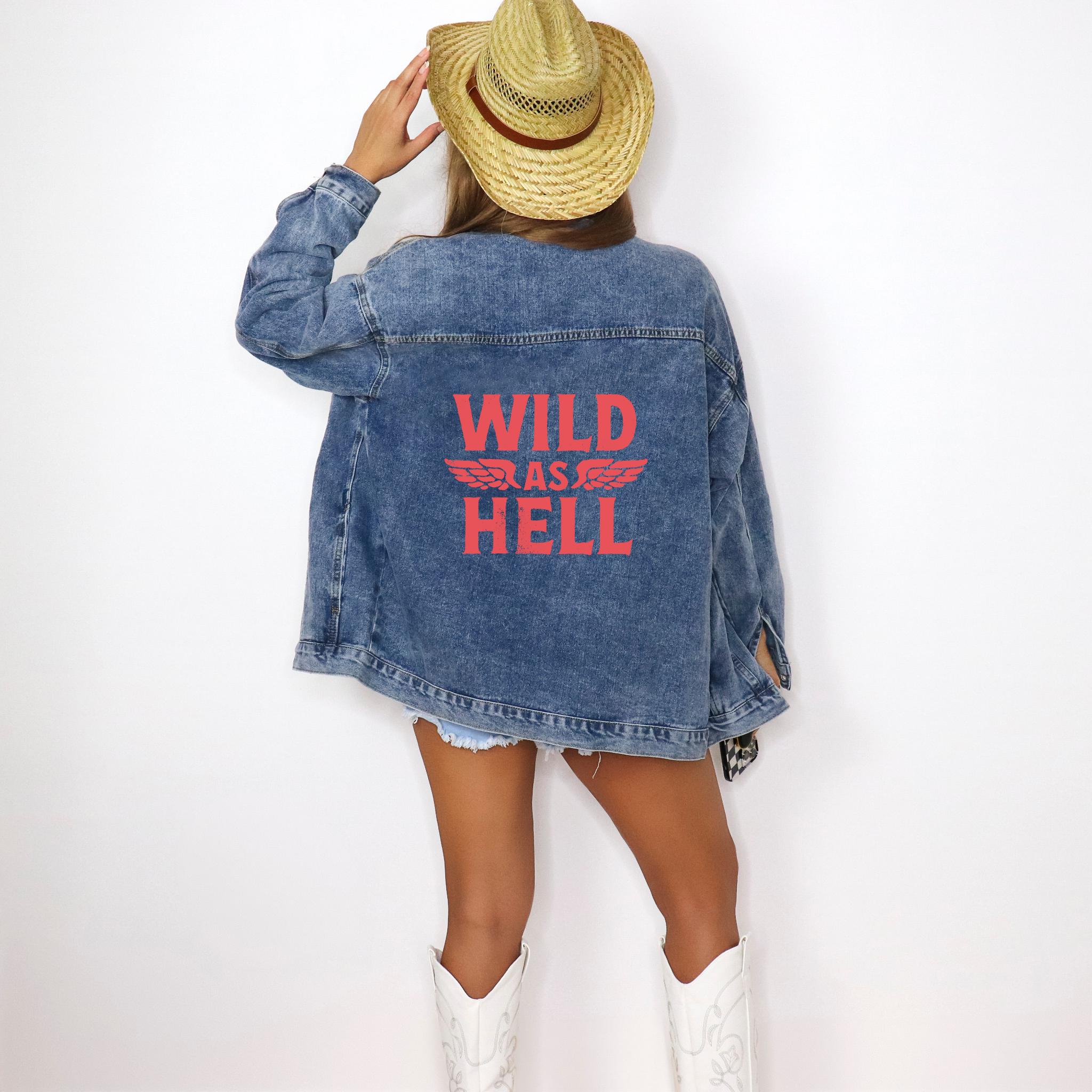 Kick up some dust and turn heads in this “Wild As Hell” oversized denim jacket – made for the rowdy, the free-spirited, and the unapologetically wild cowgirls out there.