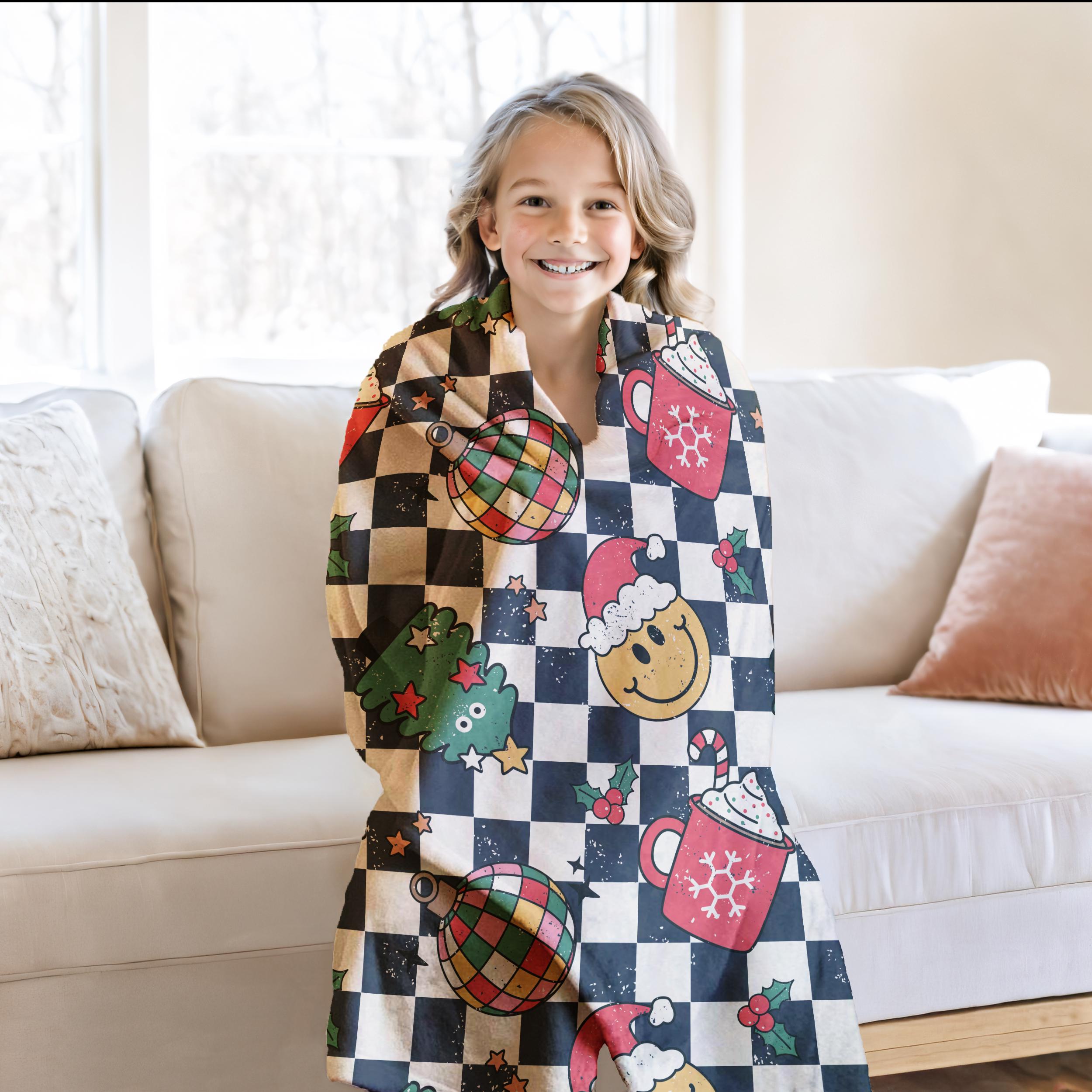 christmas blanket, winter blanket, festive home decor, retro christmas, retro holiday decor, kids christmas throw, kids christmas decor, festive decor, festive home goods, cute christmas throw, fun kids gifts, stocking stuffers, kids stocking gifts