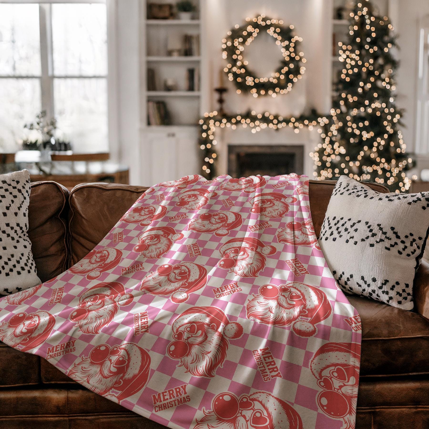 christmas decor, santa blanket, pink christmas, retro holiday, cozy throw, holiday home, santa decor, christmas gift, festive blanket, christmas cozy, winter blanket, retro santa, mayhemthreads