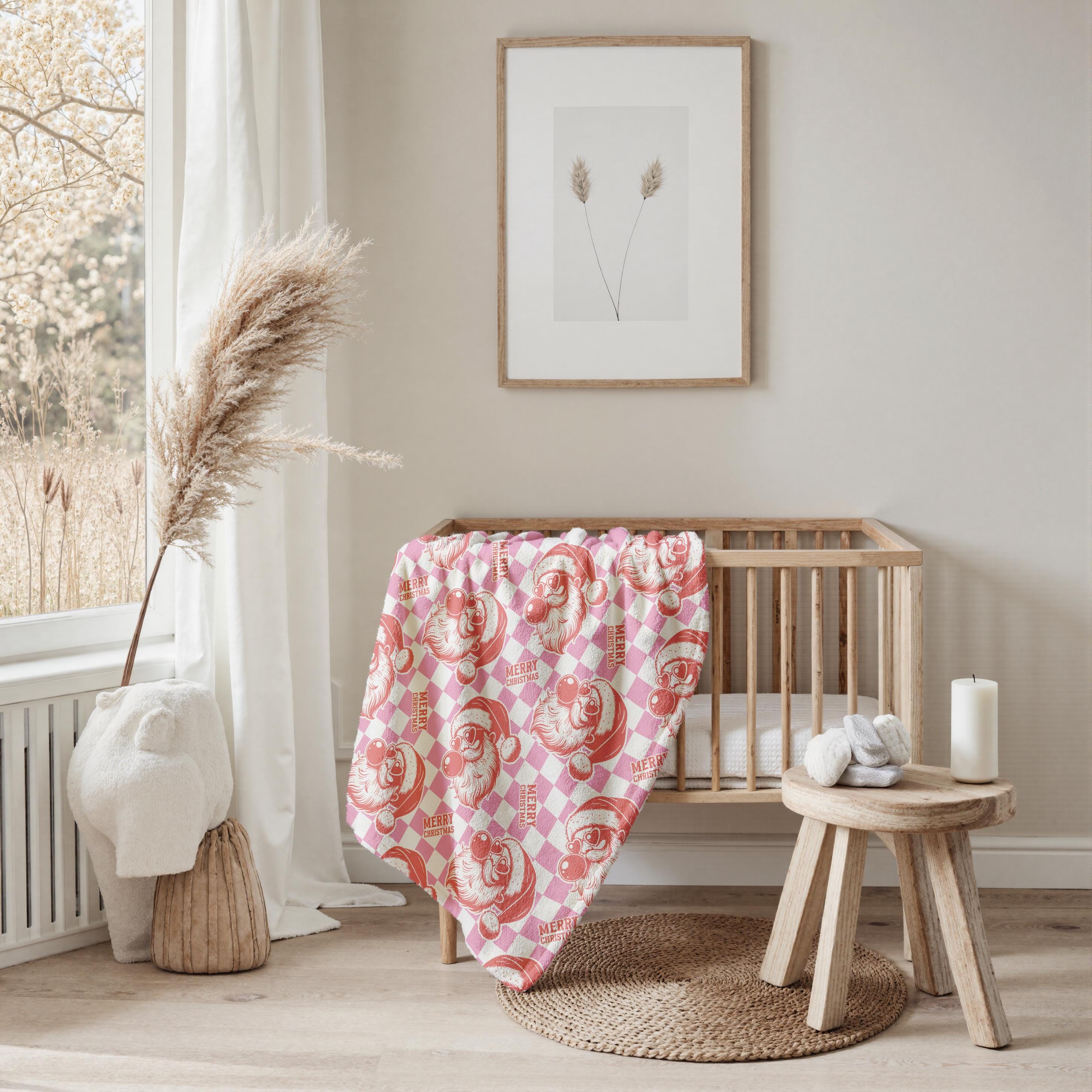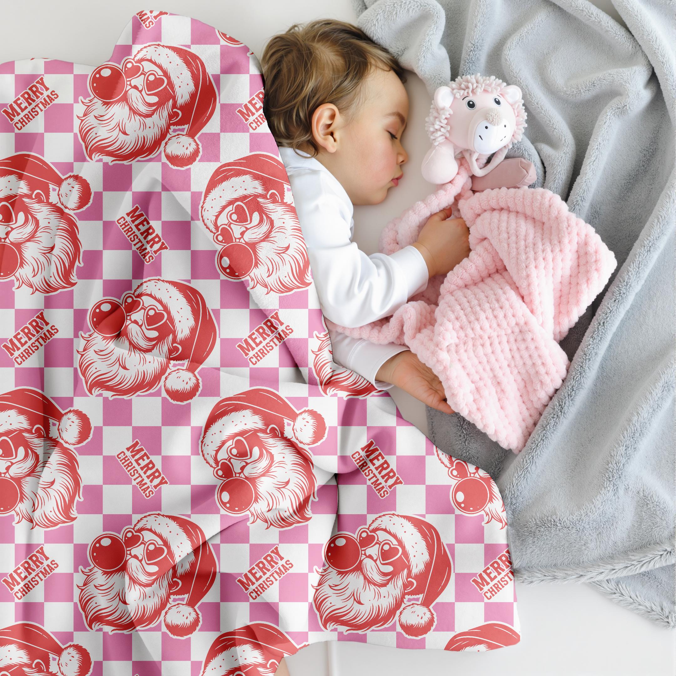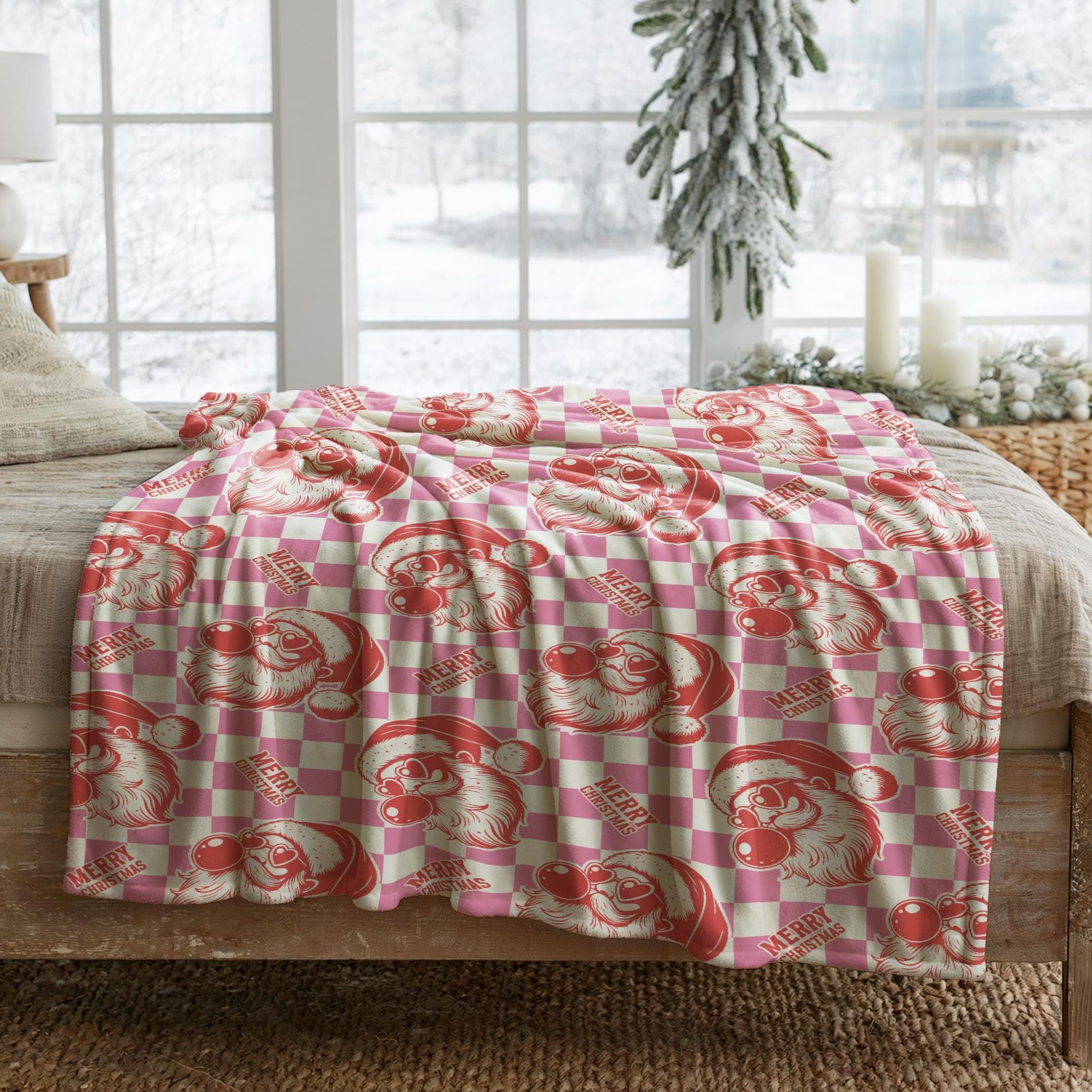🎅 Pink Santa Checkered Velveteen Blanket 🎄 Snuggle up in Christmas cheer with this retro pink Santa checkered blanket. Soft, plush, and full of festive charm — perfect for gifting or cozy nights in!