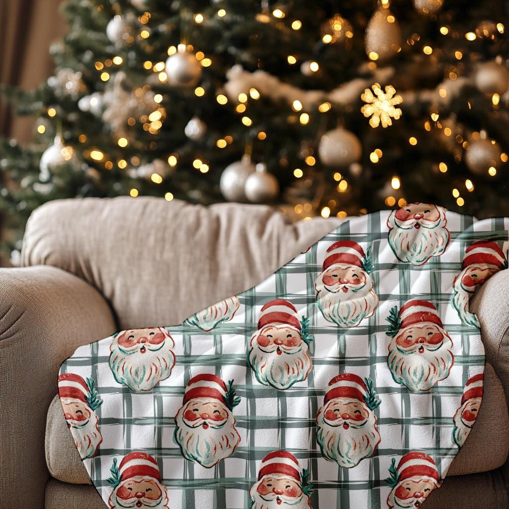 Bring a touch of nostalgic holiday magic to your home with this Vintage Santa Velveteen Plush Blanket! Inspired by retro Christmas charm, this cozy throw wraps you in warmth, cheer, and a sprinkle of old-fashioned Christmas spirit. Featuring jolly Santa faces and a festive plaid pattern, it’s perfect for cozying up by the fire, watching Christmas movies, or adding a merry touch to your holiday décor.