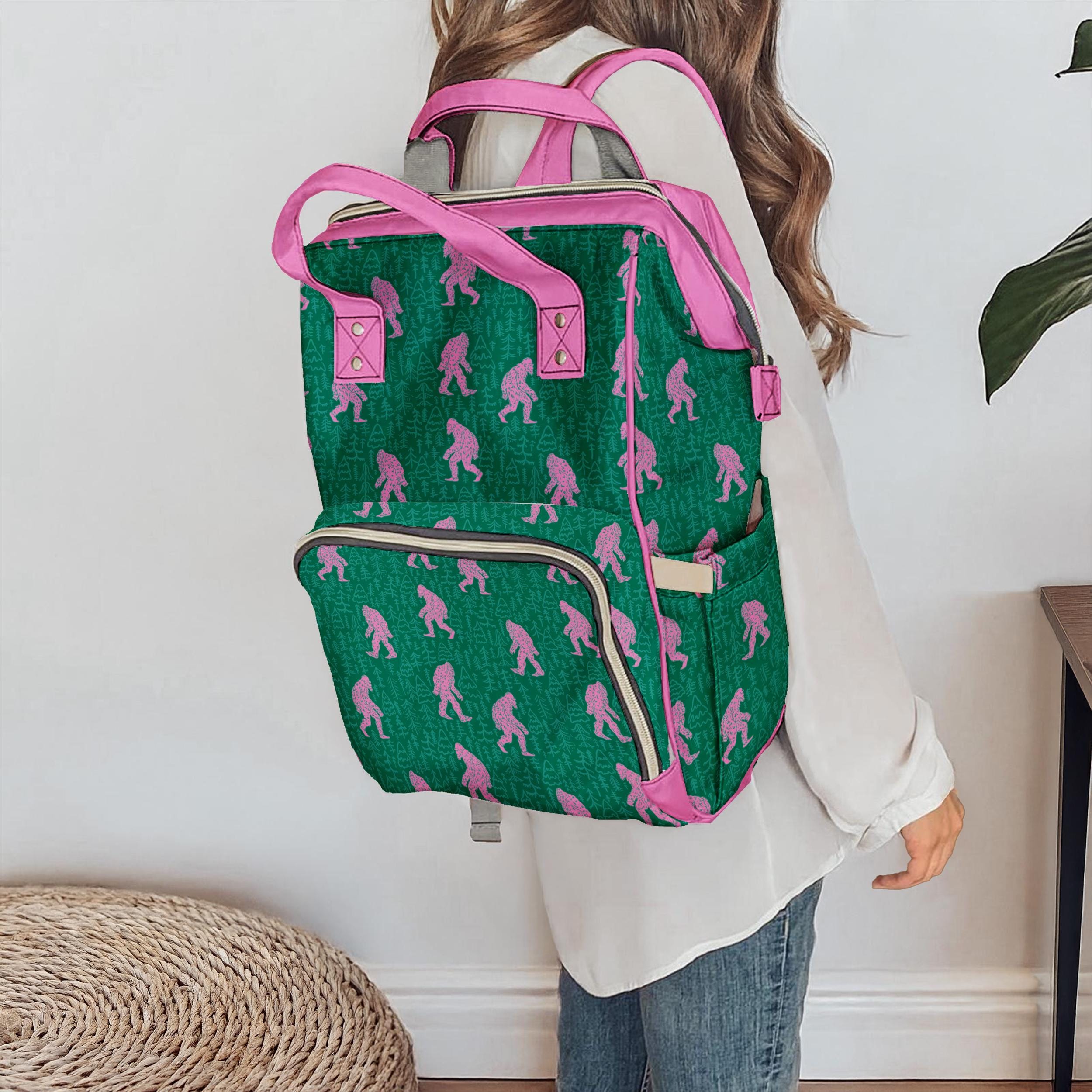 Bigfoot baby bag, pink diaper backpack, cute baby gift, toddler essentials, baby girl diaper bag, unisex baby bag, baby shower gift, forest theme nursery, sasquatch diaper bag, new parent must have, adventure baby gear, travel diaper bag, Bigfoot Baby Girl Nursery, Cute Bigfoot enthusiast gifts, bigfoot lover gifts, fun baby shower gifts.