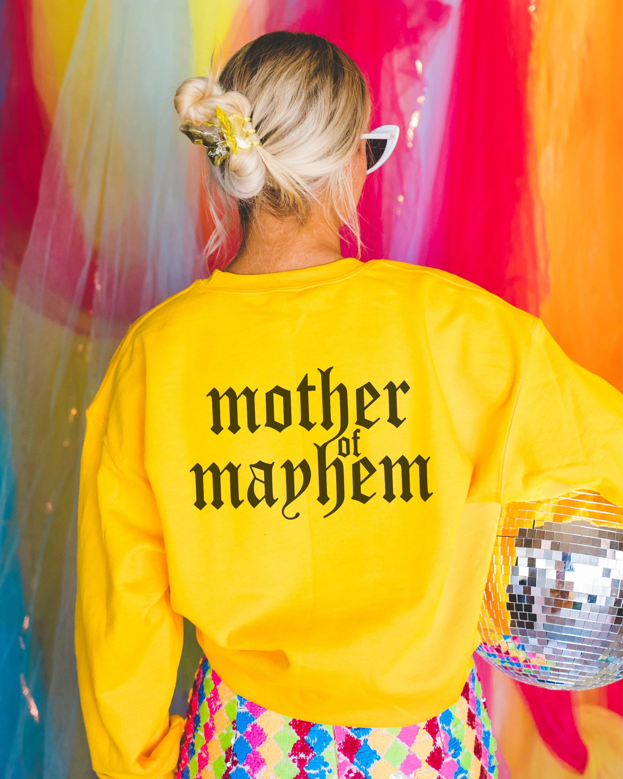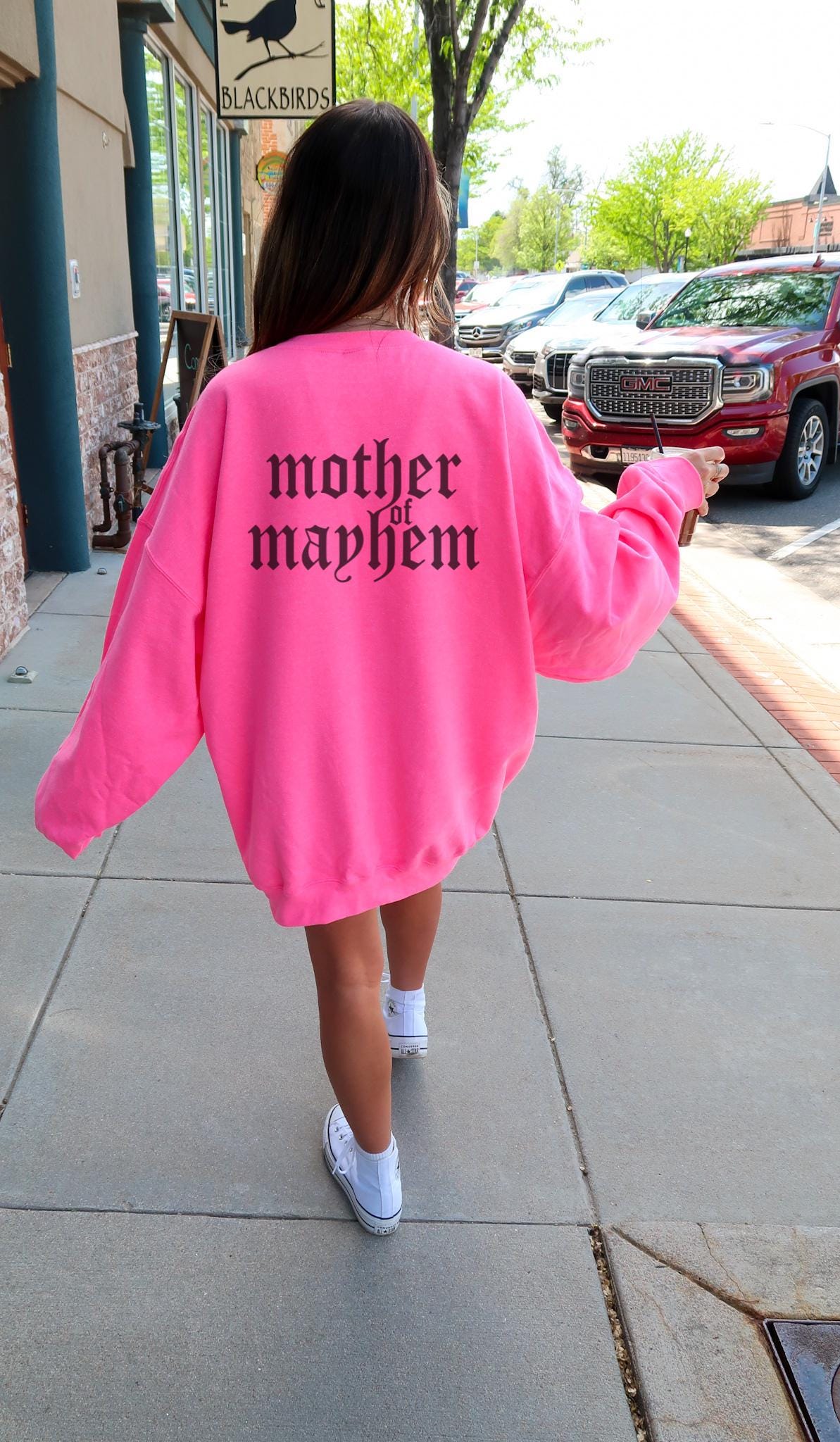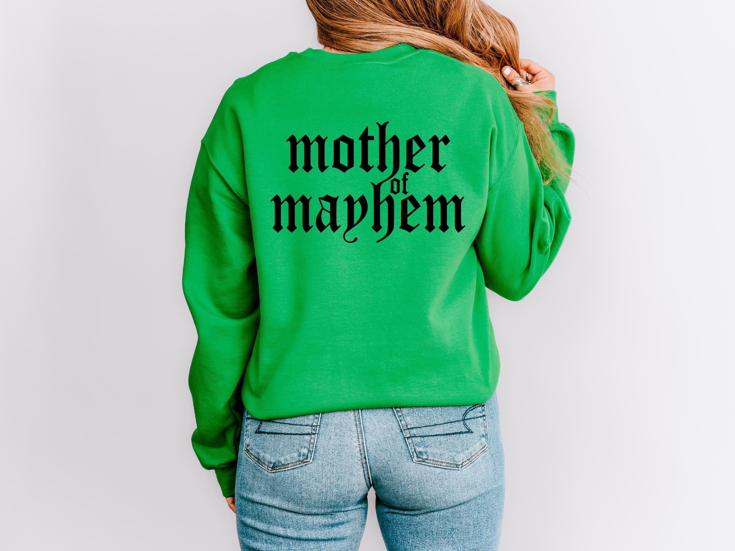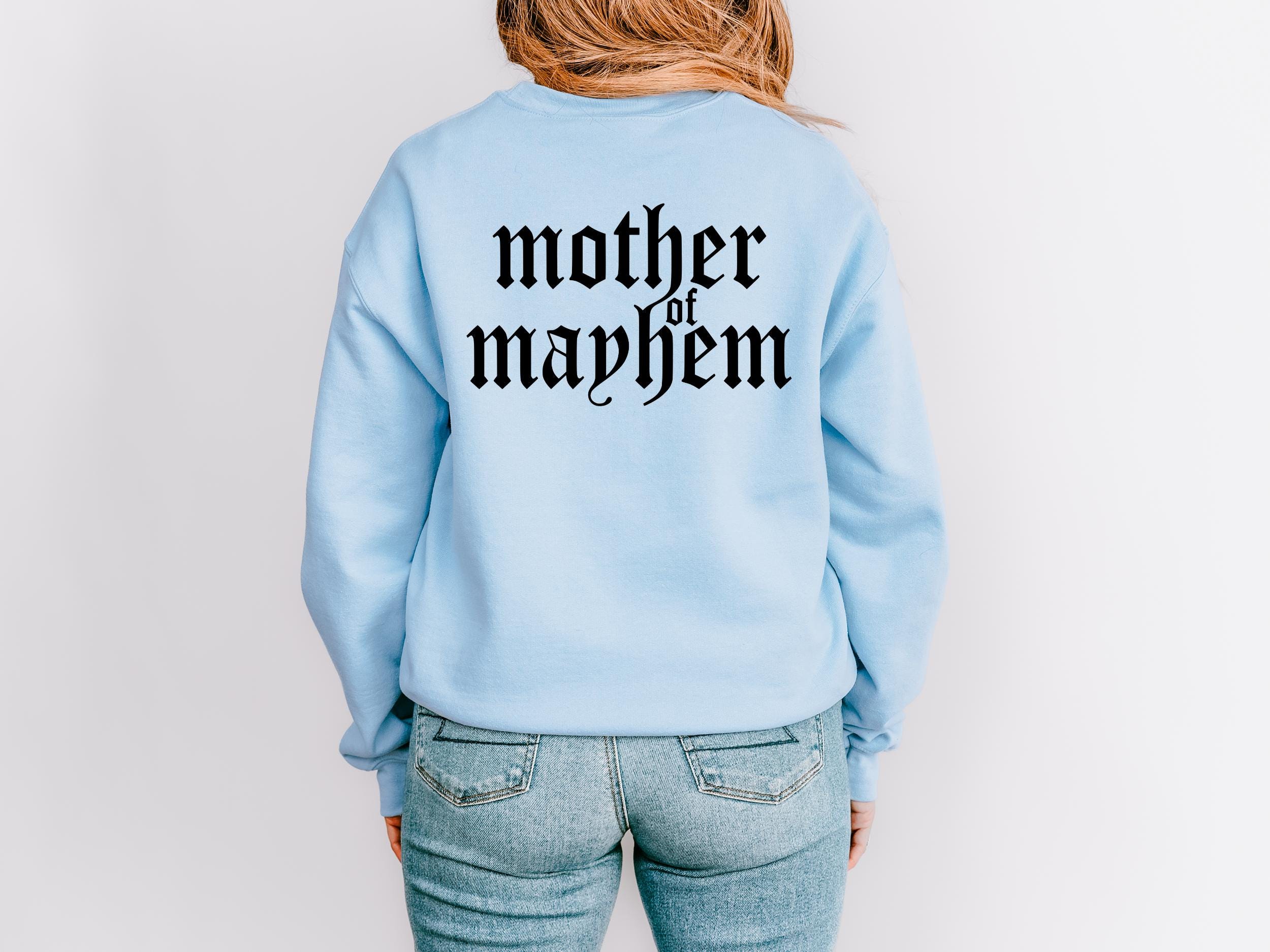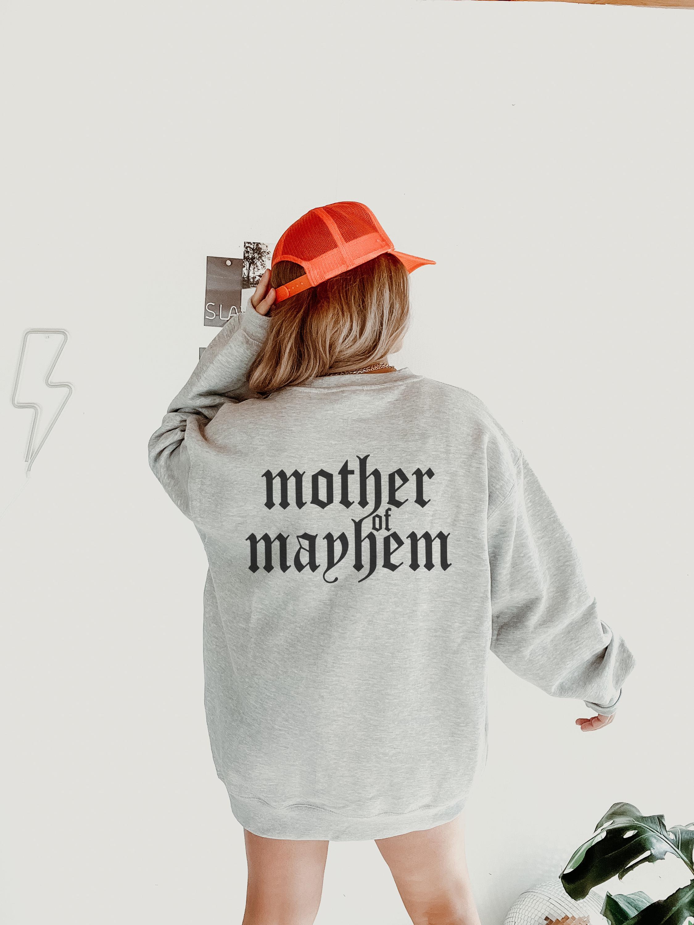 Meet your new favorite mom-uniform: the Mother of Mayhem crewneck. Made for the moms who juggle chaos with caffeine, sarcasm, and unmatched style. This cozy Gildan sweatshirt is soft, durable, and designed with that perfect relaxed fit. True to size for a classic look, or size up for that oversized “cool mom” vibe everyone loves.