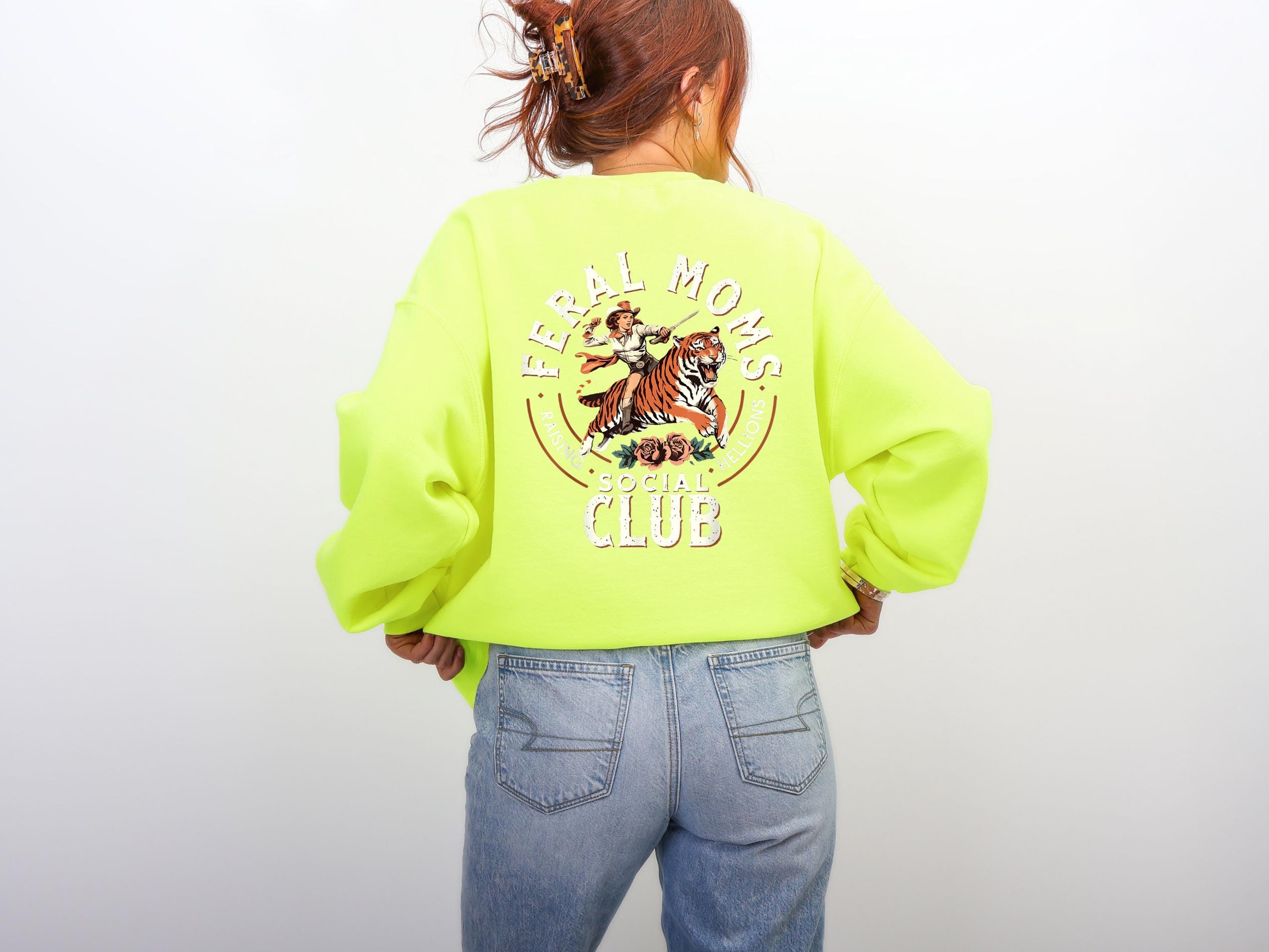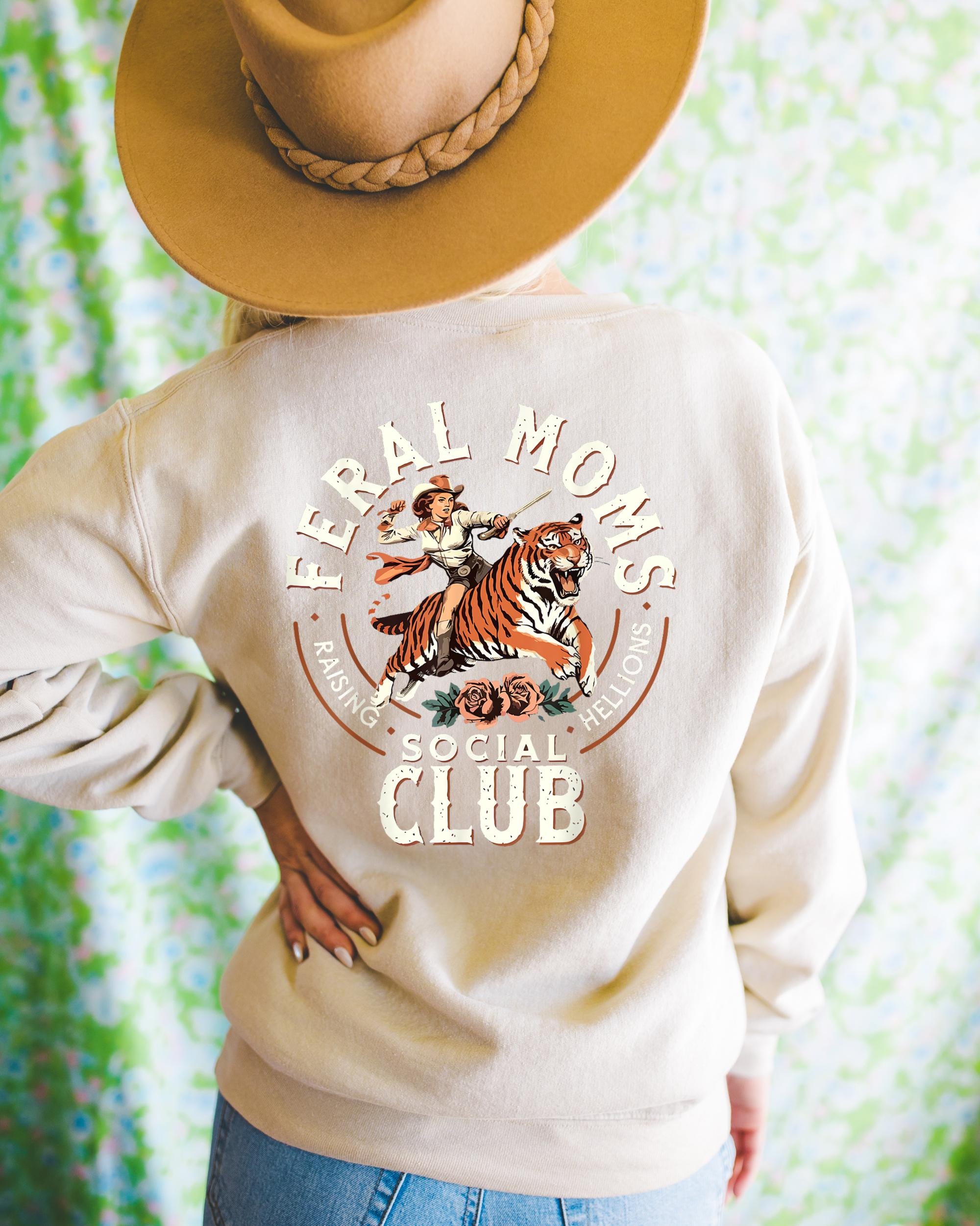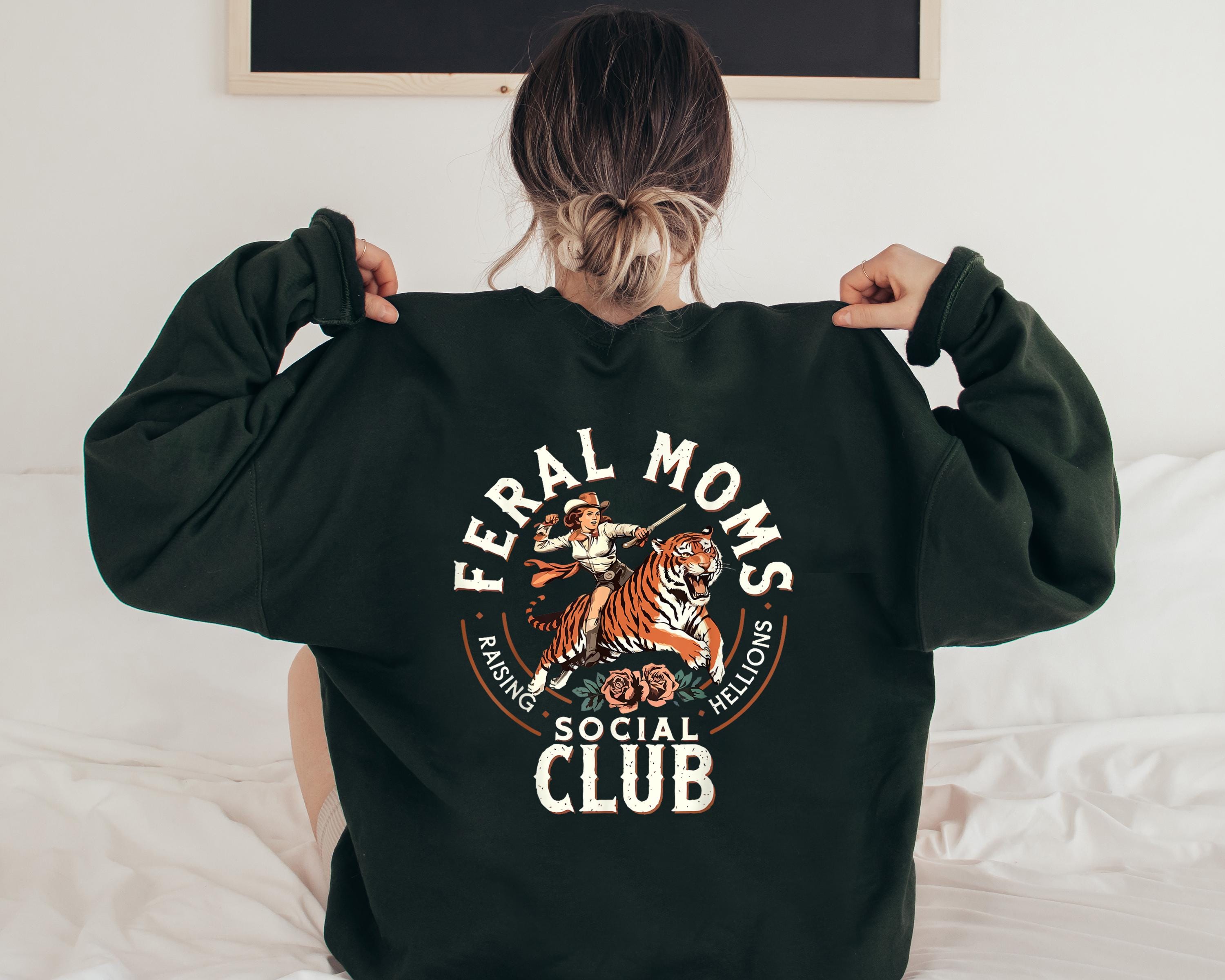 This one’s for the moms who get things done, raise tiny wildlings, drink their coffee hot sometimes, and do it all with feral energy. Meet your new favorite oversized, cozy, “don’t-mess-with-mama” crewneck - soft, durable, and dripping in retro tiger-taming vibes.