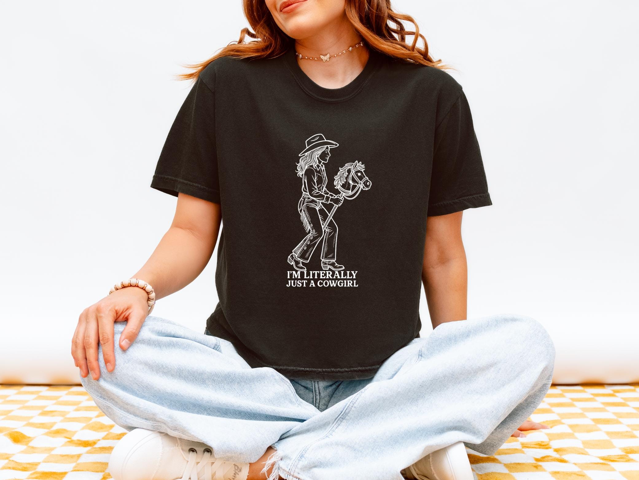 This one’s for the girls who live in boots, daydream about wide open skies, and carry a little cowgirl energy everywhere they go. The “I’m Literally Just a Cowgirl” boxy tee is equal parts playful, effortless, and western cool. Designed with a relaxed, slightly cropped silhouette, it’s made to feel lived-in from day one and styled your way - tucked, loose, layered, or worn on repeat.