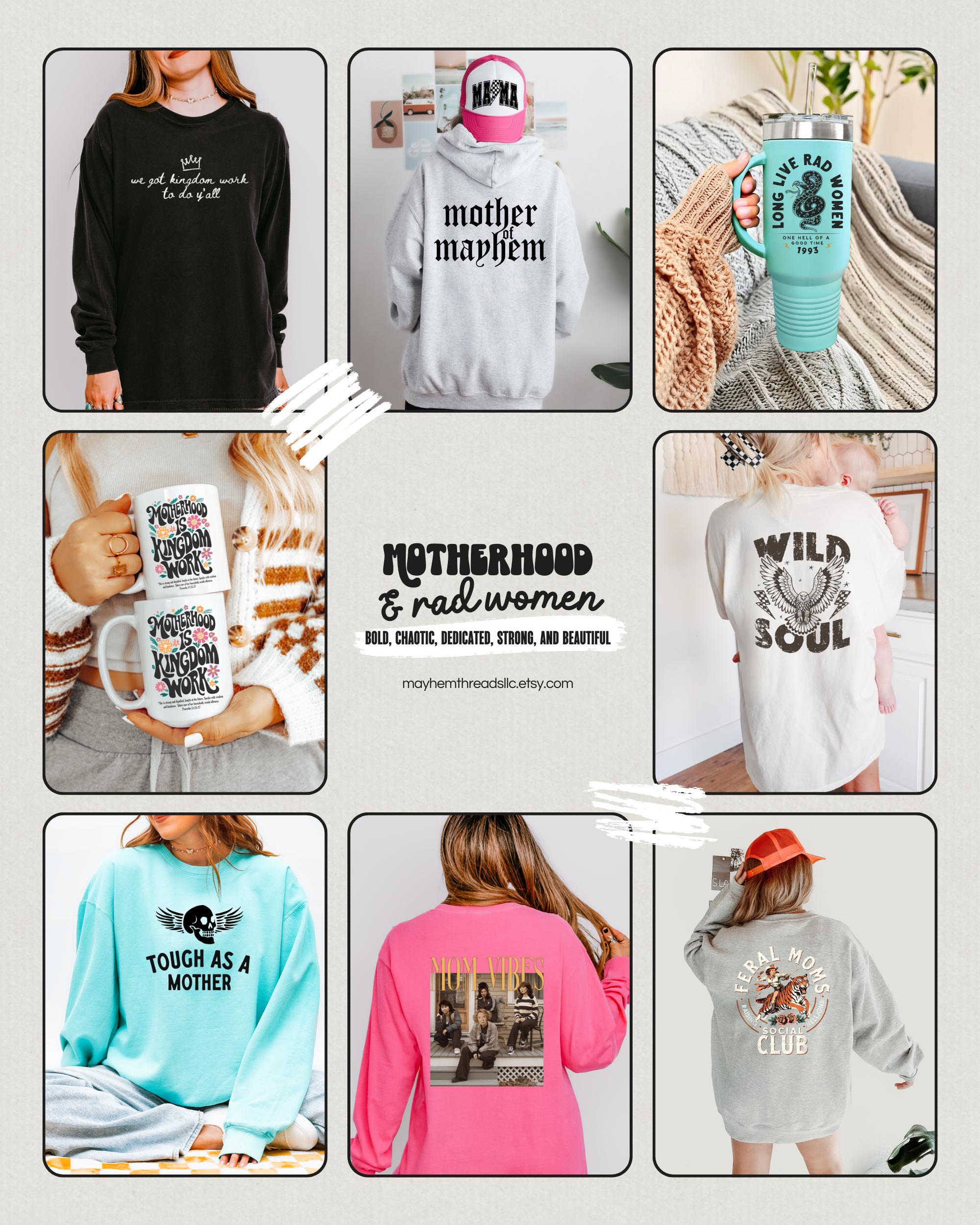 Because all Mayhem Threads items are custom made just for you, we’re not able to accept returns or exchanges based on size, color preference, or buyer’s remorse. Each piece is created specifically for your order, so we want to make sure you love what you pick before checkout.